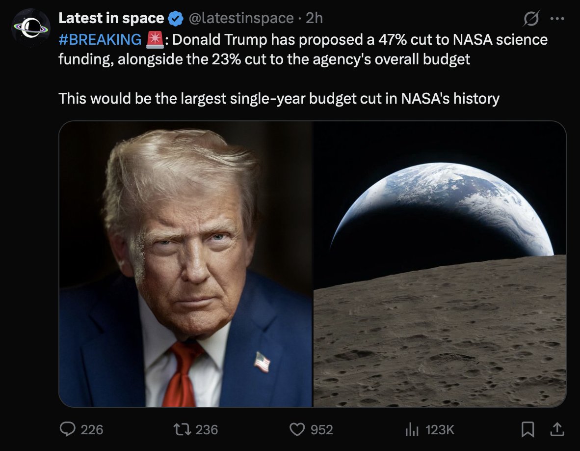 Did he even acknowledge the recent NASA Artemis 2 moon flight? Not a single day where this idiot isn't doing something incredibly dumb.