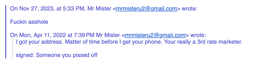 Look at these two emails he sent to me... the one in 2022 literally says he was going after my phone.