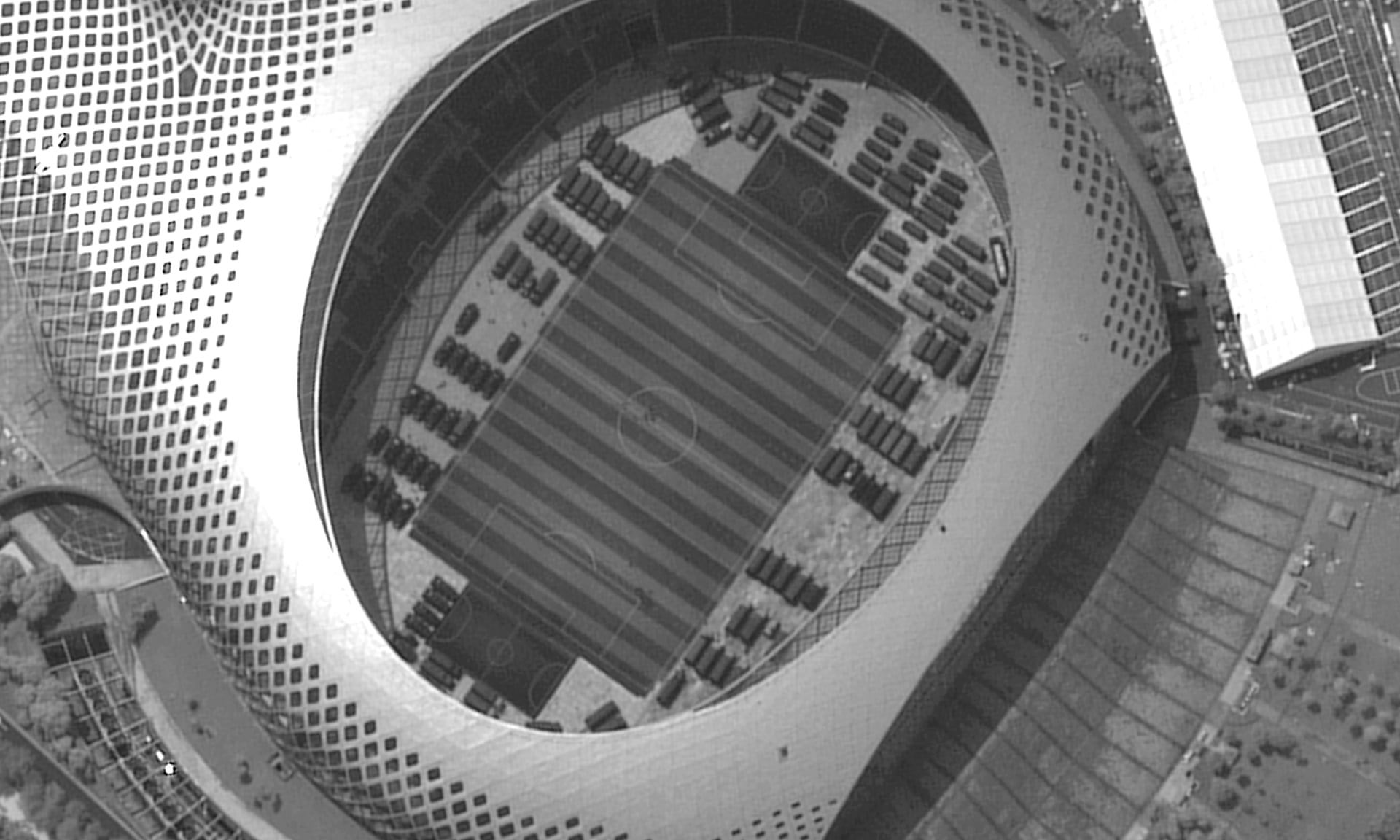 - Football stadium seen under a scanning electron microscope?Nanocephalic