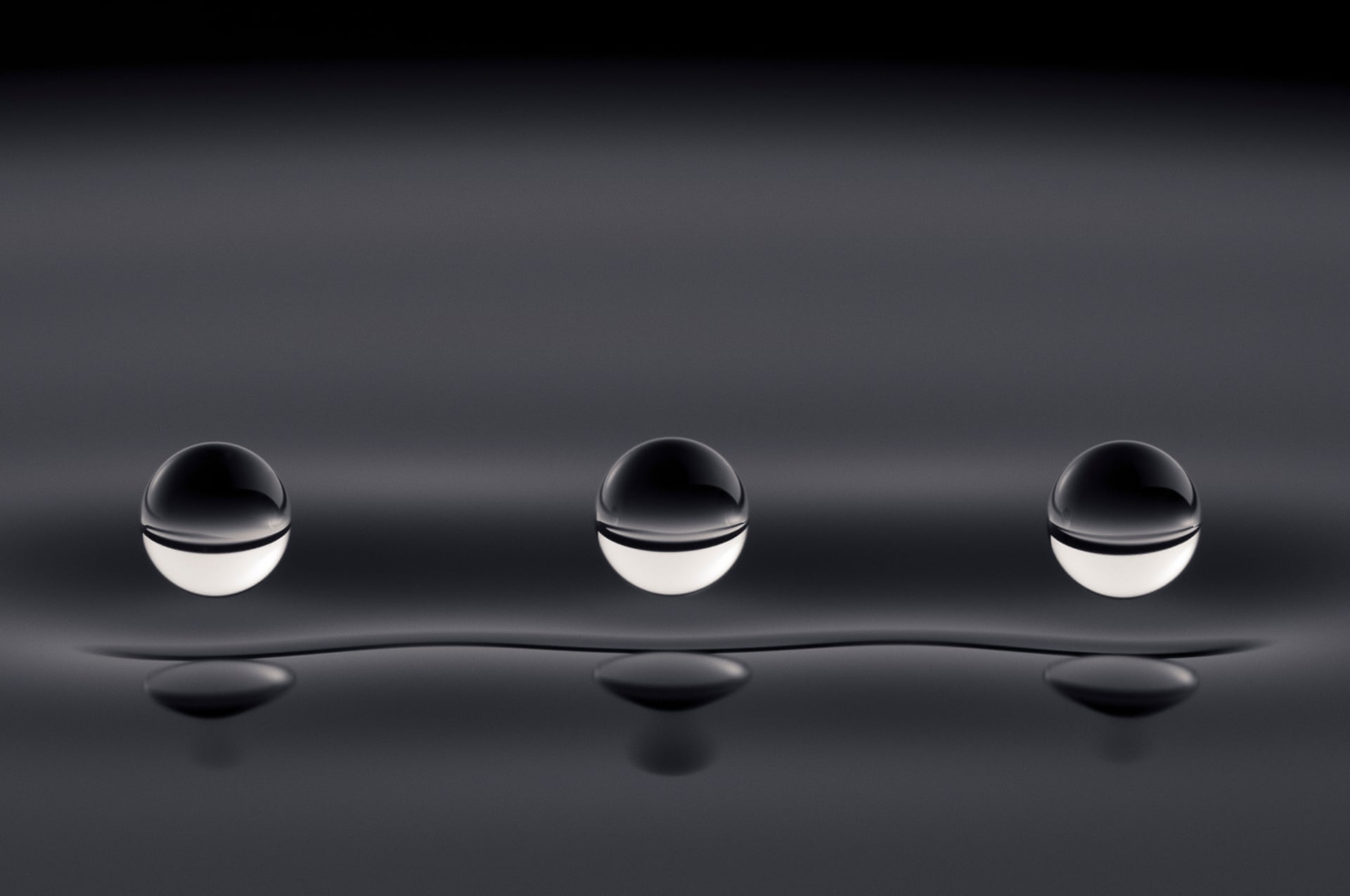 These silicone oil droplets are bouncing indefinitely above a vibrating pool of silicone oil at 15 Hz. The surface waves generated by the droplets are analogous to quantum mechanical waves that guide the dynamics of quantum particles. While the droplets move like quantum particles, they behave like quantum waves’