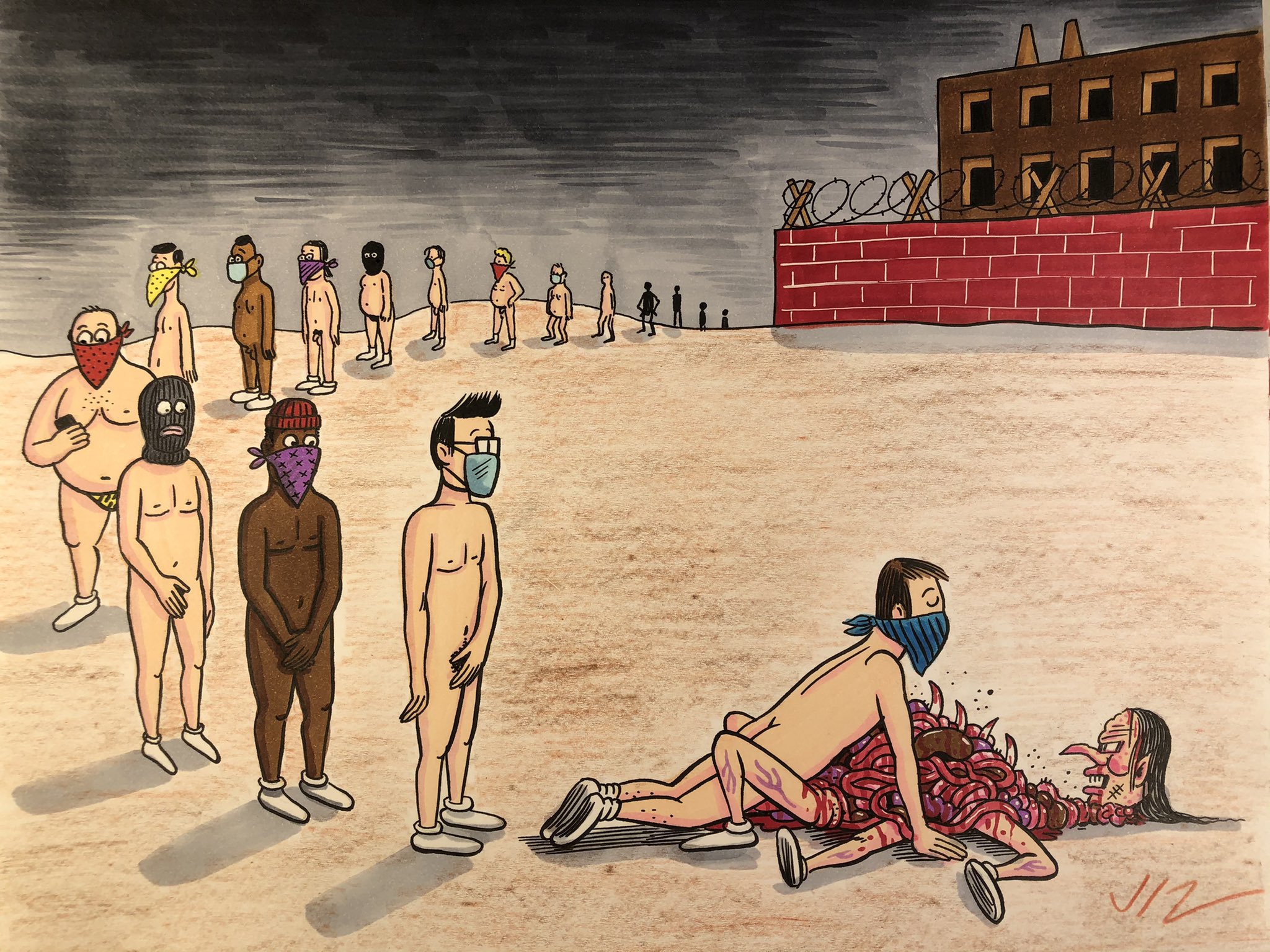 - For instance, he also did a piece of a bunch of cartoon coronaviruses gang-raping women. https://pbs.twimg.co…garbage
