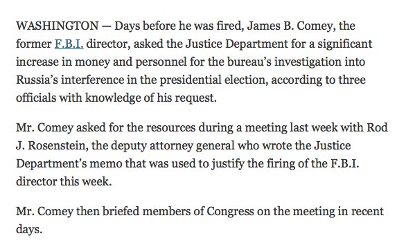 - So Comey's almost-suggestion of appointing special counsel in regard to Trump/Russia has nothing to do with his firing. Got it.face_melter