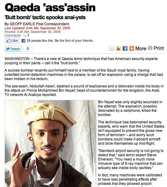 But wait a sec...can we use this to officially declare victory? Because if this is the level Al Queda is operating on (asses, dogs), then we have reduced them to such a level of pathetic desperation that it's laughable. We may as well quit burning 400 billion a year just so we can use the Middle East as a giant firing range or whatever Bush's original idea was. We can leave now.