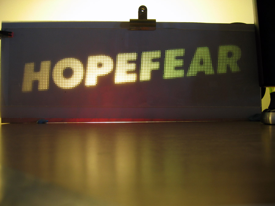 Depending on context, orange can either connote fear or hope. Red can also connote fear, anger, or more positively, strength.