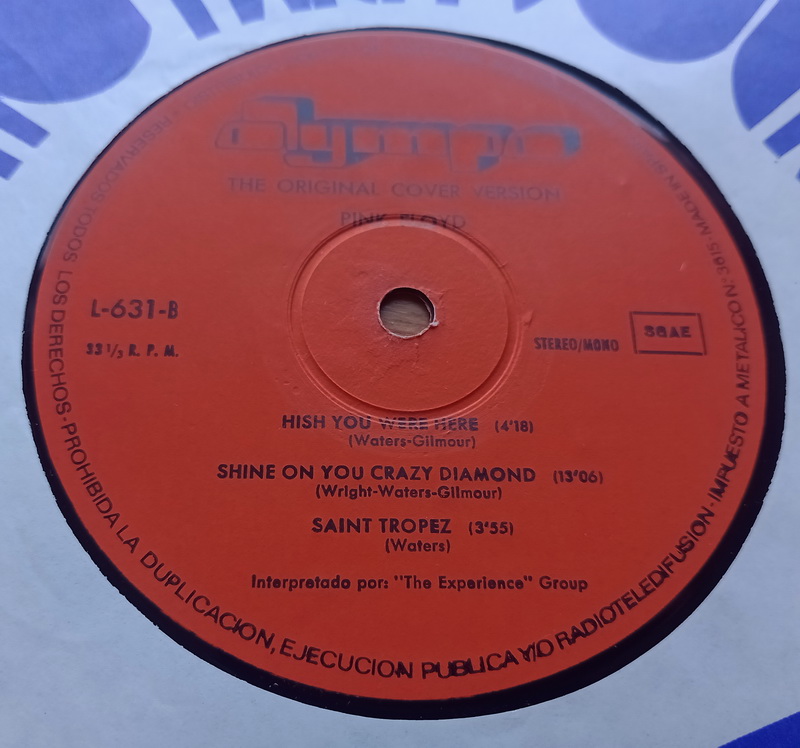 Spanish covers band The Experience Group bravely taking on 5 Pink Floyd tunes on this 1978 release, they also went on to have a go at ABBA, KISS and Supertramp on other releases. This mini-album complete with various misspelled tracks comes in a fancy inner sleeve promoting a German bandleader.