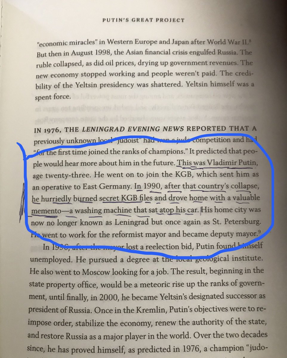 "Putin’s old washing machine sitting atop of his car whilst fleeing from Dresden. I just found the story in Daniel Yergin’s (not Bill Browder) book The New Map, p 75, chapter Putin’s Great Project. The BBC mentions Putin had £200 in savings at the time."