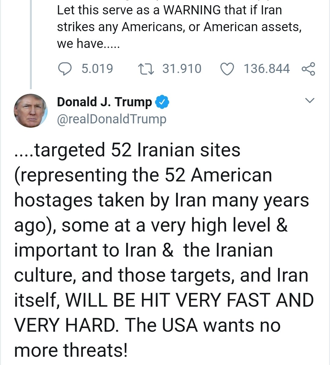 Trump Threatens To Attack 52 Iranian Targets, Including Cultural Sites