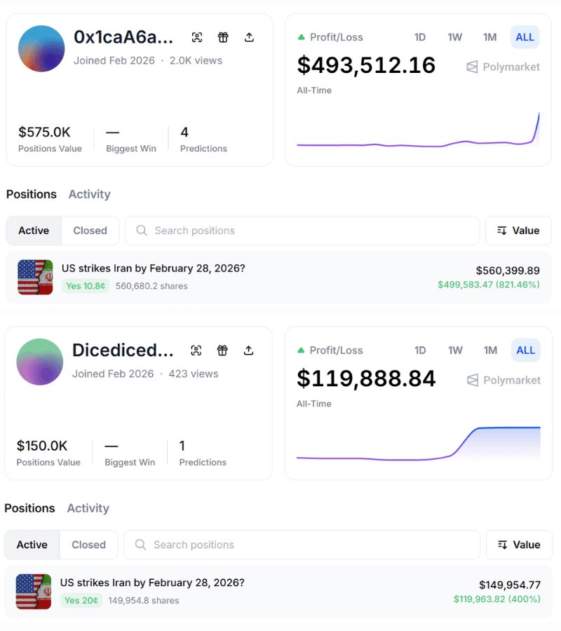 - "Six suspected insiders made $1.2M betting on a US strike "