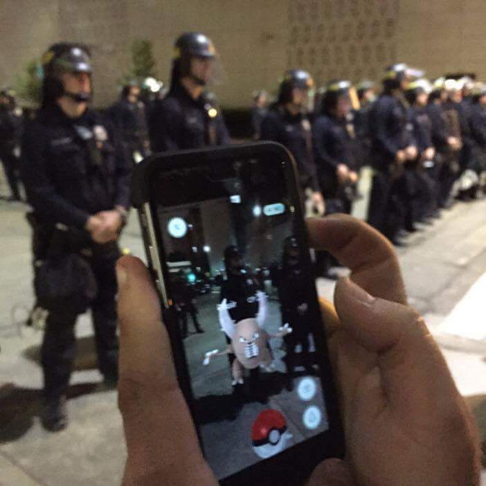 40 year old white guy and 2 young black kids recruit cop to play Pokemon Go with them...