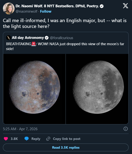 Artemis II launches as early as this afternoon (6:24pm EST)... sending 3 'mericans and one canuck 10 days in space around the moon and back (further out in space than any humans have ever been).