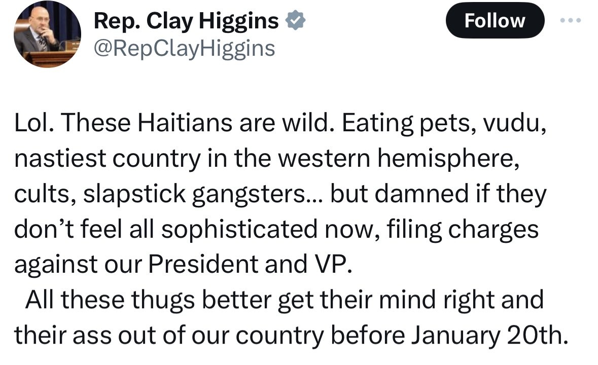 “He was approached on the floor by colleagues who said that was offensive. He said he went to the back and HE PRAYED ABOUT IT, and he regretted it, and he pulled the post down. I'm sure he probably regrets the language he used. But you know, we move forward. We believe in redemption around here.”