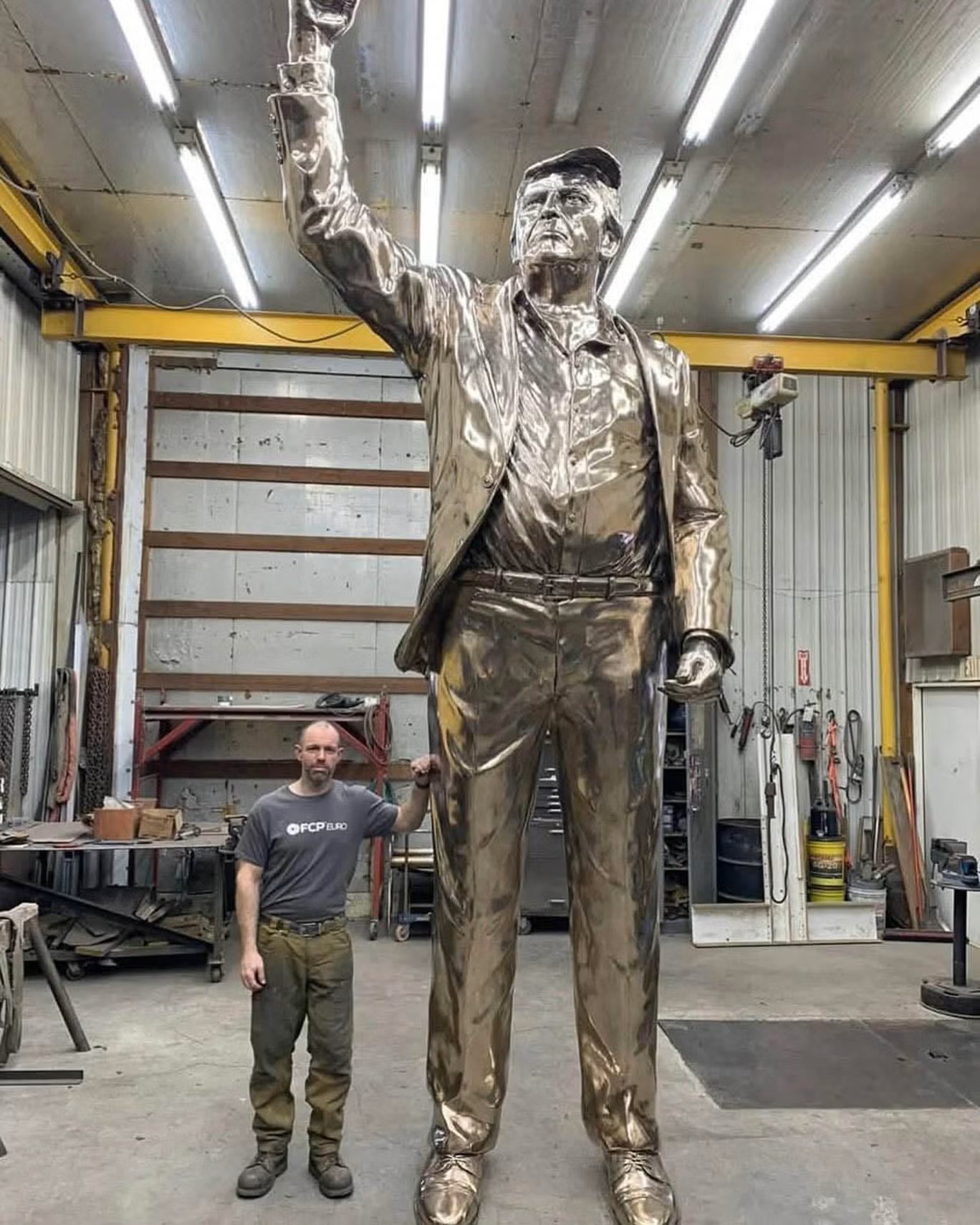 - A 15-foot, gold-leafed bronze statue of Donald Trump, titled "Don Colossus," remains in sculptor Alan Cottrill's Ohio studio due to an unpaid $92,000 balance.fooler