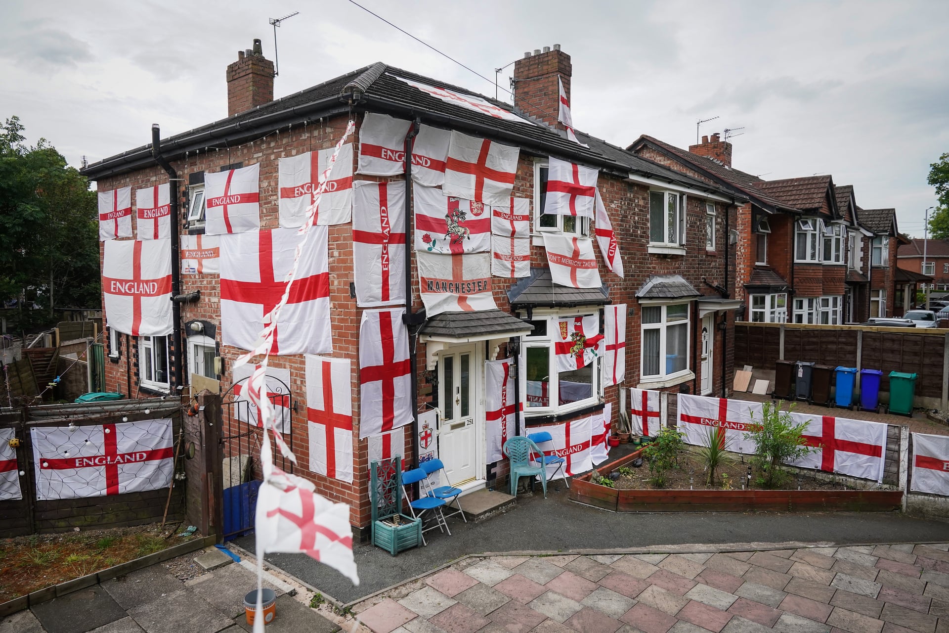 - A home in Burnage draped in England flags to support the national team in the Euro 2020 football championship. England will play the Czech Republic tomorrow forneverscared