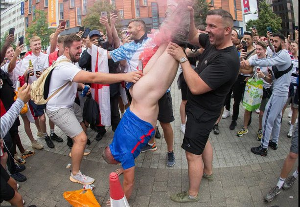 "The footage of a nude man waving an England flag while attempting to windmill his chipolata dick in the car park outside the PC World in Wembley is a better metaphor for Britain’s attitude to the world under Boris Johnson than any satirist could devise."
