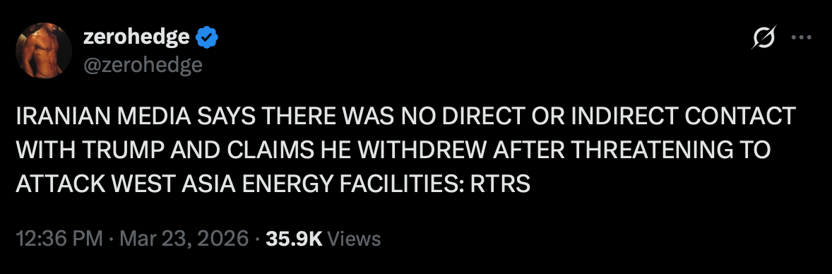 So war is off when there's too much pressure on financial markets and war is back on weekends when markets are closed.
